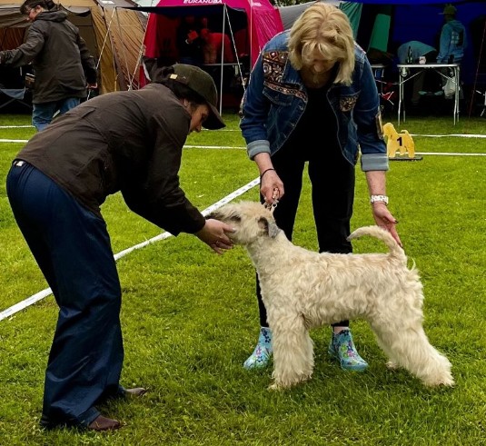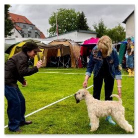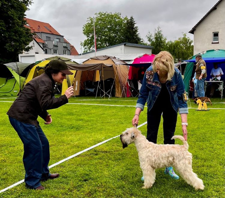 Mrs. Helena Quigg richtete erstmals in Deutschland und startete direkt mit dem Irish Terrier Special für die ISCWT. Sie nahm sich für jeden Wheaten viel Zeit und begutachtete und beurteilte diese gewissenhaft.