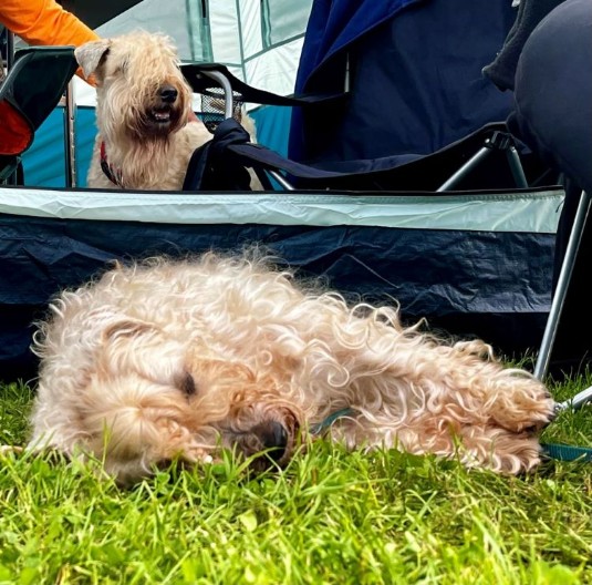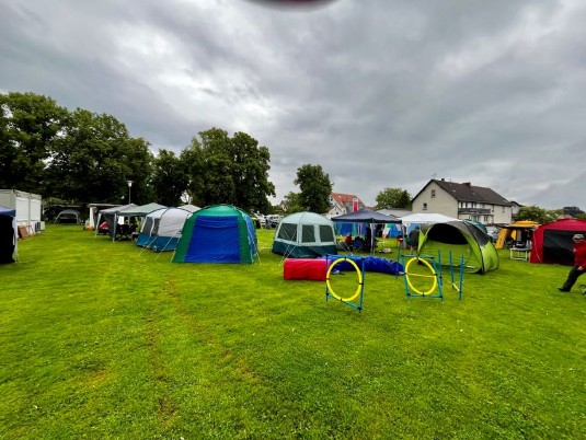 Beim Eintreffen auf dem weitläufigen Gelände in Gudensberg sah ich schon viele Zelte der Aussteller, die bereits aufgebaut waren. Die dunklen Wolken hingen zwar noch am Himmel, aber ich war mir sicher, dass selbst dieses Wetter die Aussteller nicht davon abhalten würde, ihre schönen Terrier zu präsentieren.